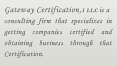 Gateway Certifications, I LLC. ("Gateway") provides Certification services to minority and women-owned businesses that seek Federal, State, City and private sector Certifications.
